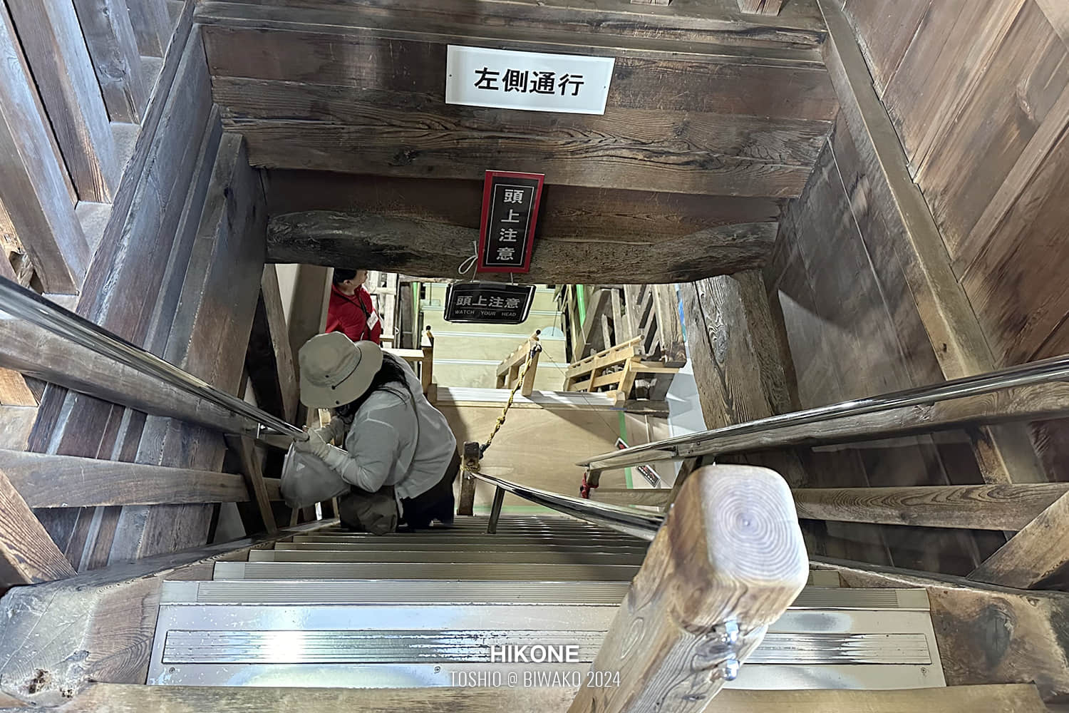 天守阁内近70度陡峭的武士梯,是当年为御敌设计的智慧,需手脚并用方能攀上。
