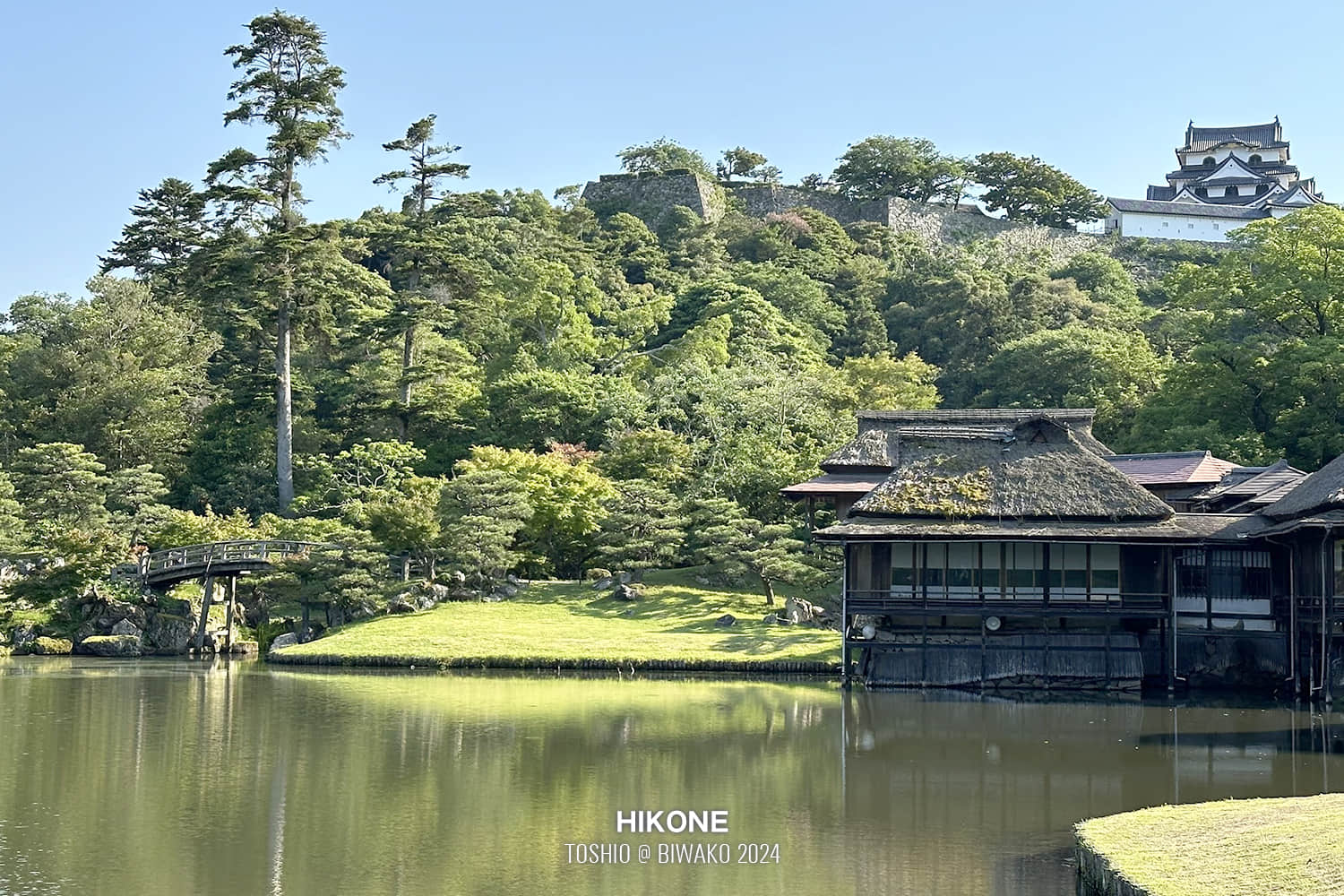 这座池泉回游式庭园巧妙地将彦根城的天守阁借景入园,池水如镜,倒映着白墙黑瓦与蓝天白云,是摄影的绝佳角度。
