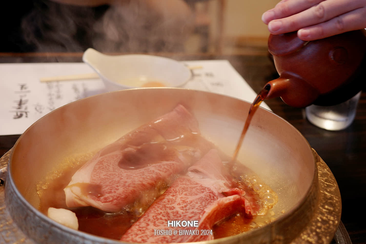 在充满城邑风情的近江牛专门料理店「SENNARI亭 伽罗」,招牌茶香涮肉,在海带高汤中加入当地绿茶,清爽不腻。