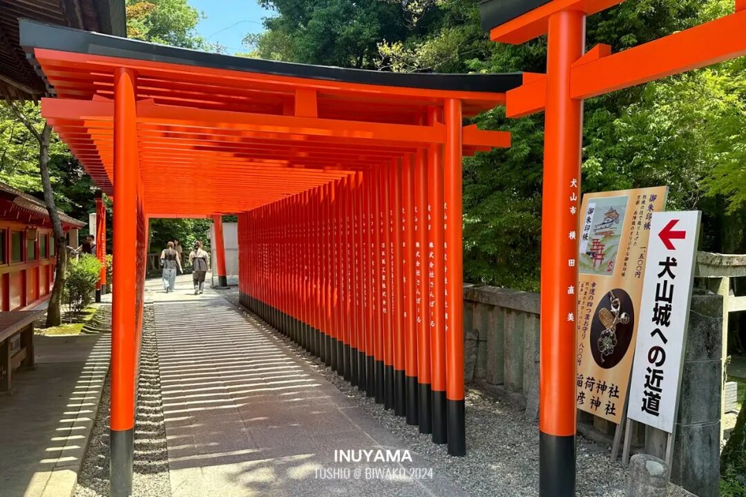 了解完神社的背景,心里的复杂感少了些。走过那一排红色的连串鸟居,沿着碎石铺成的步道往前走,就进入了犬山城的范围。