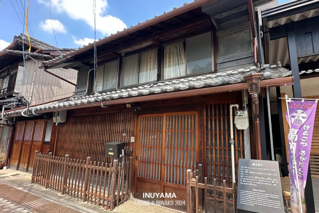 从犬山站下车沿着站前通步行约10分钟,转过一个街角,就是犬山城下町了。感觉和其他地方的城下町有些相似,建筑风格带着点 “刻意做旧” 的味道,能让人感受到几分复古的气息。街道两旁开了不少店铺,商业气息挺浓的,不过可能因为现在是淡季,游客不算多,逛起来不会太拥挤。