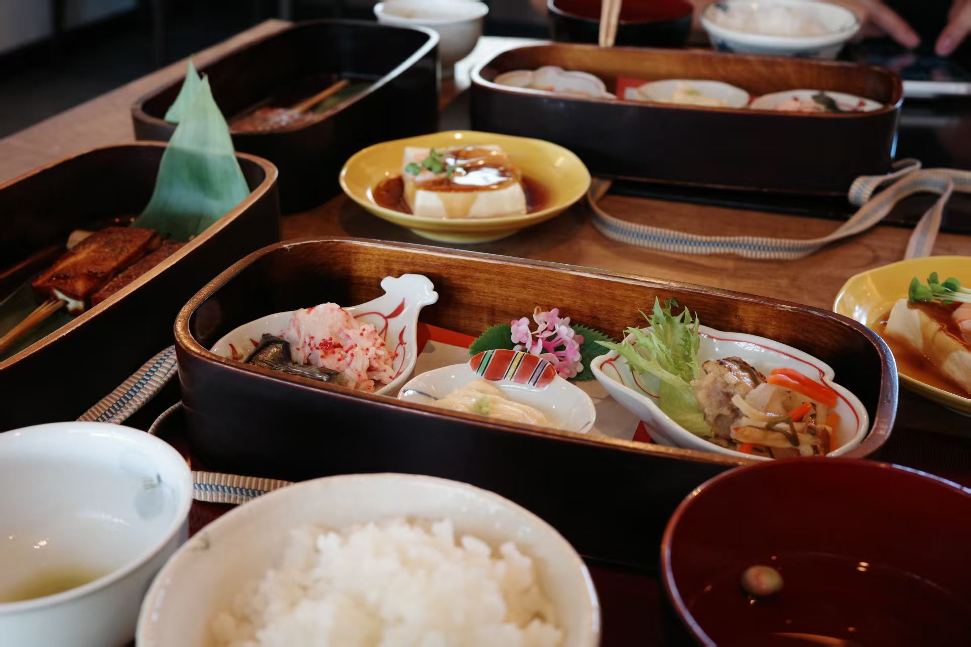 店里中午只卖セット(也就是套餐),没有其他单点的选择。这种套餐比平时吃的定食内容要丰富些,招牌就是当地的豆腐。本来还担心,日本人的餐食分量普遍偏小,可能吃不饱,等到菜全部上齐,倒觉得挺实在:豆腐鲜嫩入味,小菜和主食也给得足,扎扎实实吃完,竟然很有饱腹感。
